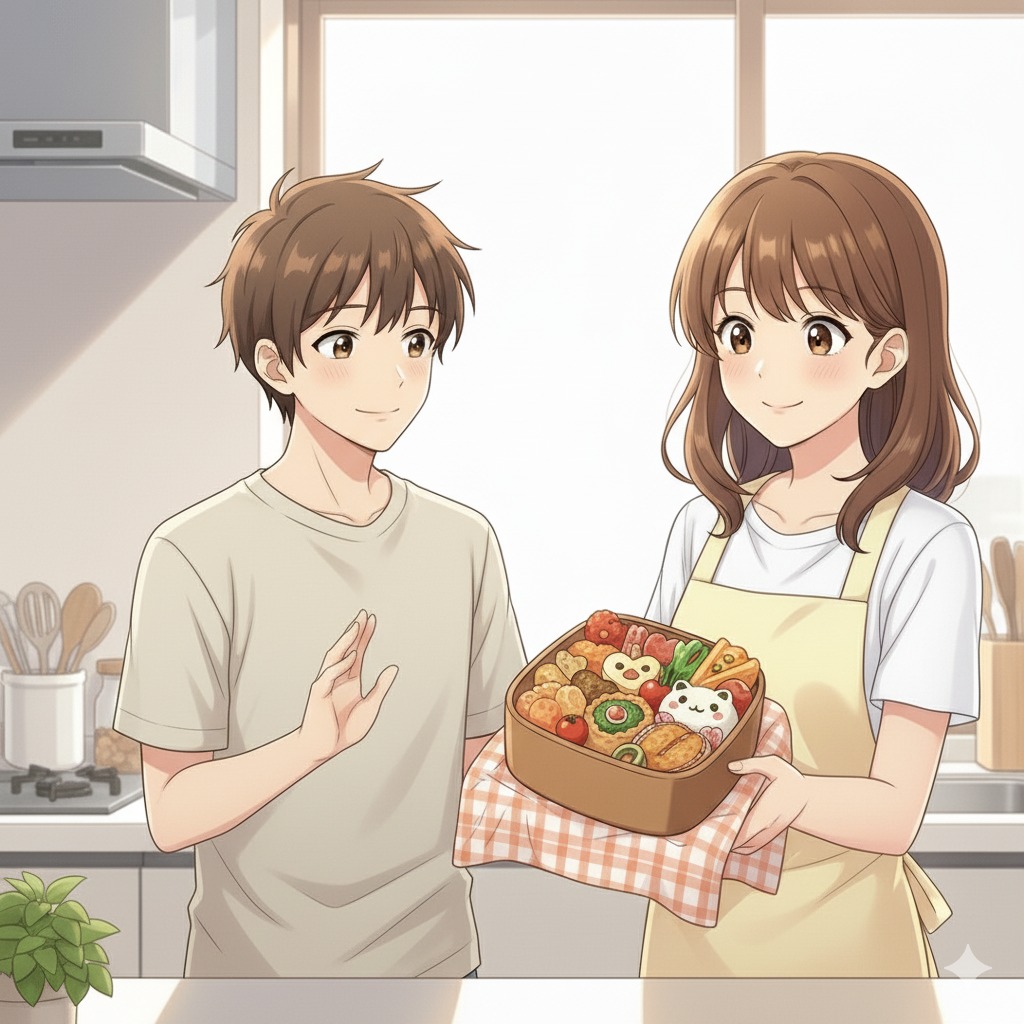 バランスを考えて一生懸命おかずを詰める彼女の姿には、あなたの健康を願う深い思いやりが込められているのです。