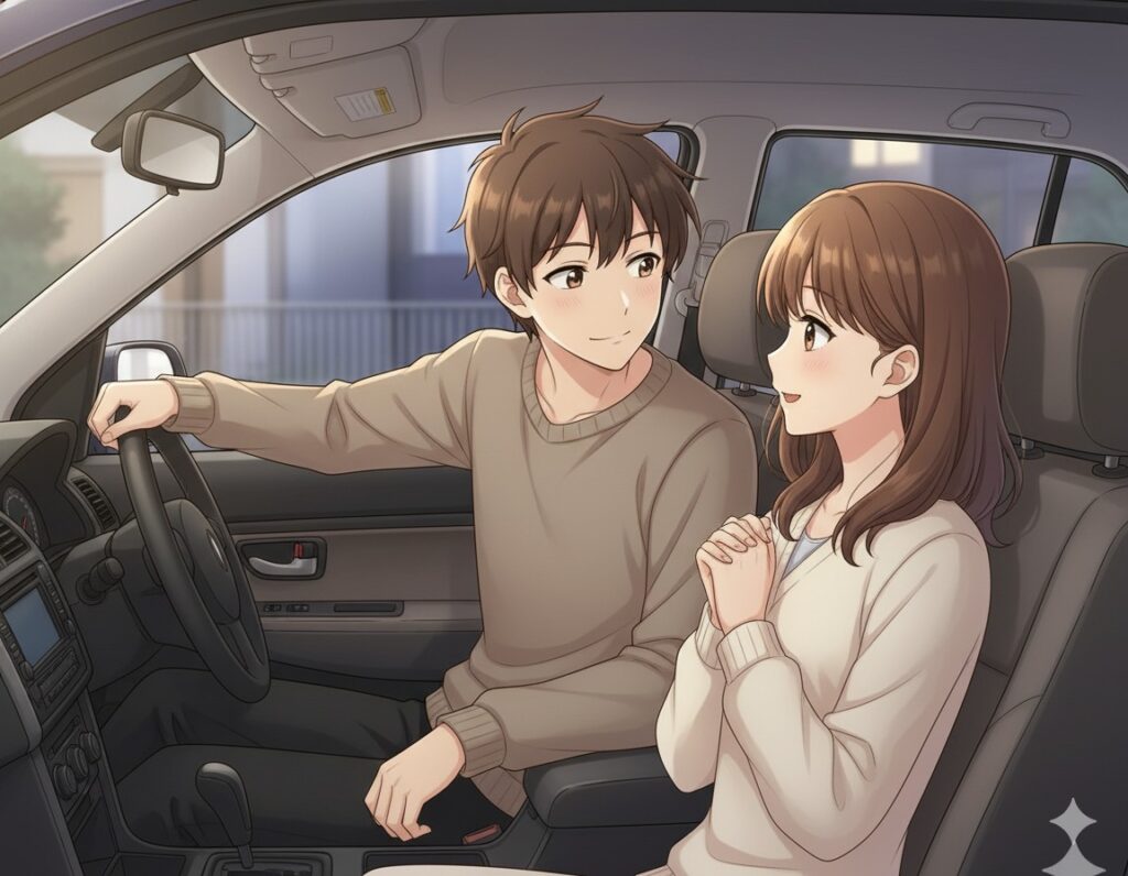車内の雰囲気全体から、彼がこの二人きりの時間をどう捉えているかを感じ取ってみましょう。