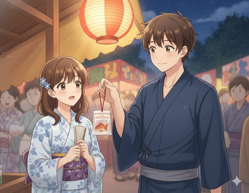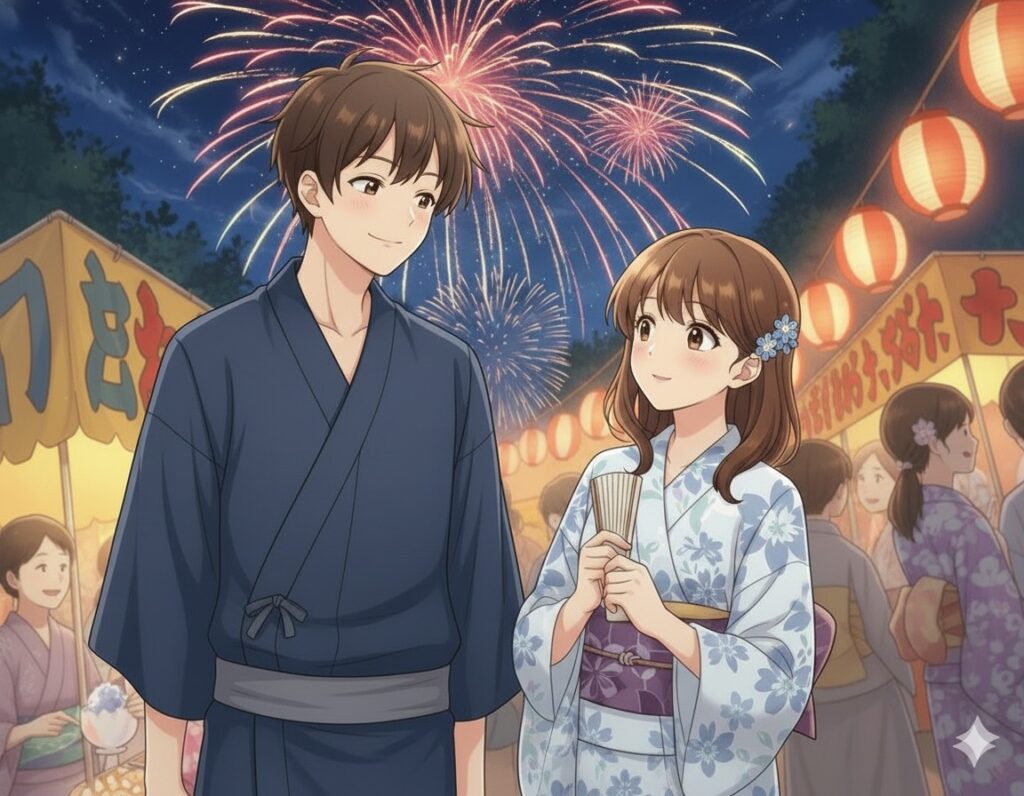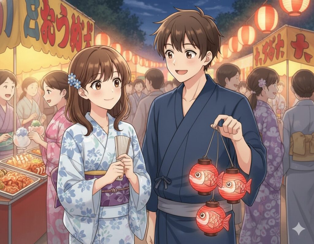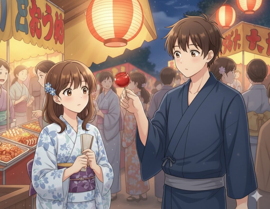 夜のお祭りはまさに恋に落ちるための完璧な舞台だと言えるでしょう。