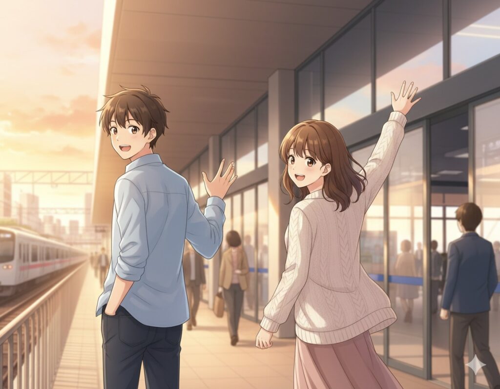 友人関係において、別れ際に振り返って手を振る行為は、純粋な親しみや友情の証です。