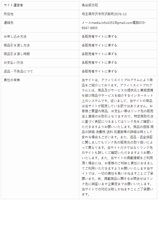 特定商取引法に基づく表示